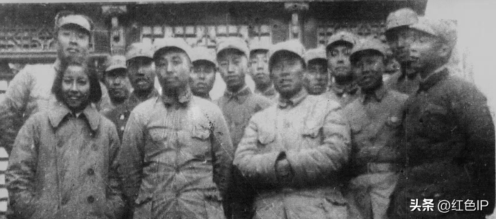 出色完成护送彭德怀与新婚妻子浦安修,由延安到达山西武乡县八路军总部。前排左一浦安修,左二彭德怀,右三朱德;第二排左二左权,第二排右一傅文忱。