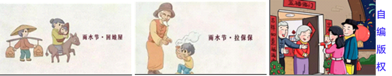 2024年02月19日 12:12:58 雨水 二十四节气的第二个,春季的第二个。每年阳历(公历)的2月19日前后交节,太阳到达黄经330度时即是。 《月令七十二候集解》:正月中,天一生水。春始属木,然生木者必水也,故立春后继之雨水。且东风既解冻,则散而为雨矣。 解读:东风即春风。春属木,水生木,雨水节气前后,万物开始萌动,春天就要到了。天气回暖,冰雪融化,降水增多。 三候 我国古代将雨水分为三候。雨水之日獭祭鱼,又五日鸿雁来,再五日草木萌动。 一候,獭祭鱼。Tǎ解读:水獭开始捕鱼了,将鱼摆在岸边如同先祭后食的样子。 二候,鸿雁来。解读:大雁开始从南方飞回北方。 三候,草木萌动。解读:草木随地中阳气的上腾而开始抽出嫩芽。大地渐渐开始呈现出一派欣欣向荣的景象。 二十四节气【雨水】有“春雨贵如油”之说 我国传统文化有“瑞雪兆丰年”之说,还有“春雨贵如油”之说。 “春雨贵如油”来自何处? 春、秋、冬季是少雨季节,如果秋、冬两季的降雨较少,土壤墒情不好,容易形成冬、春连旱。 我国大部分地区,尤其是北方,春季气温回升较快、风沙天气较多,在阳光照射下,土壤水分蒸发造成水分散失。 春季正是越冬作物如冬小麦从开始返青到乳熟期,需要很多的水。玉米、棉花等从播种到成苗,也要求充足的水。因而,此时若能有雨水降临,自然就显得特别珍贵。好雨知时节,当春乃发生。故有“春雨贵如油”之说。 “春雨贵如油”是谁说的? 解缙说的。解缙少年成才,聪明过人,十四岁已能读书一目数行。他身矮但雄辩,擅诗词、联句、书法,才华横溢,思维敏捷而性情率真。尊称“解学士”。 解缙明朝初期的文学家、内阁首辅(即内阁中位列第一的辅臣)曾奉命总裁《太祖实录》、纂修《永乐大典》。成就卓著。 解缙雨中摔倒,引得路人大笑,他尴尬之时心中愤怒,随口作诗:“春雨贵如油,下得满街流。跌倒解学士,笑死一群牛。” 二十四节气【雨水】有“拉保保•认干爹”民俗 雨水节气的习俗可分为“人际”、“劳作”、“美食”三大块。 属于“人际”的有:拉保保、认干爹、拜岳丈、回娘家…… 属于“劳作”的有:揽河泥、编竹篾miè…… 属于“美食”的有:占稻色、烧猪蹄、寒温粥……
